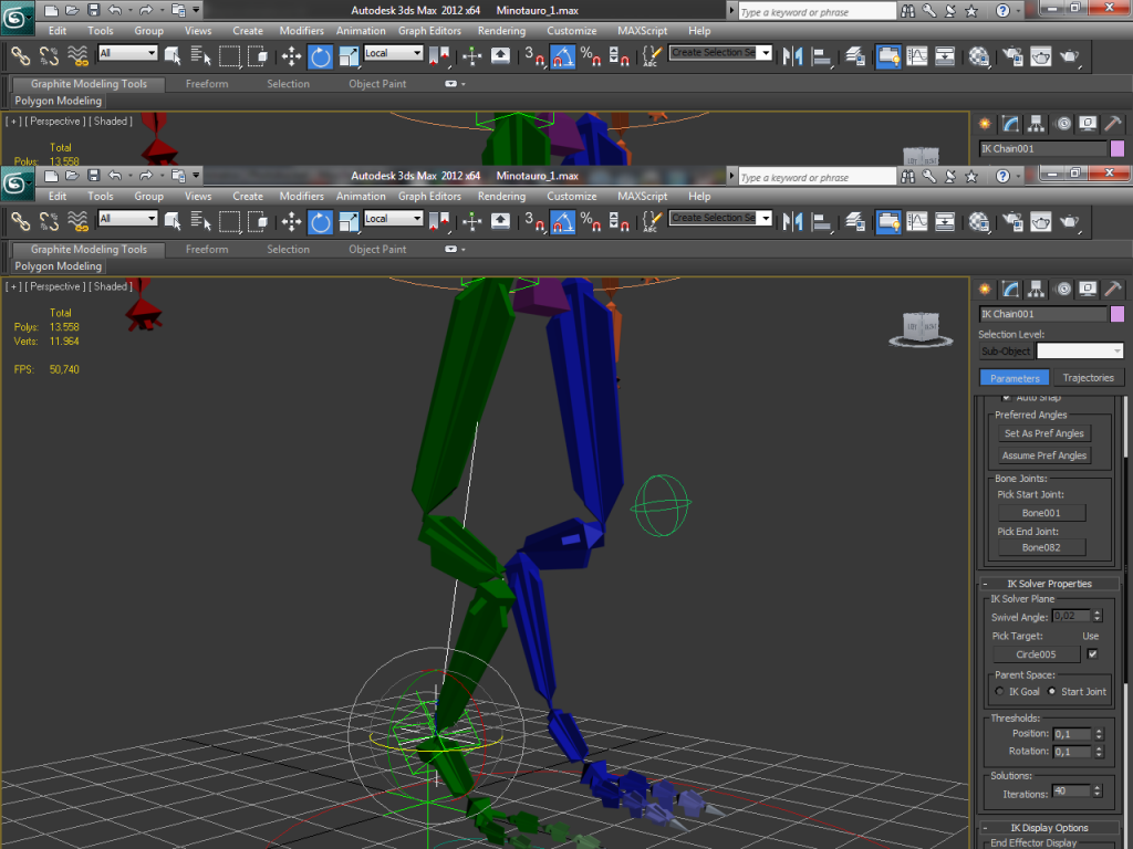 Cuando aplicas un IK Solver en 3ds Max, como en tu caso para un minotauro, el problema más común de que la pierna se “voltee” suele estar relacionado con la orientación de los huesos o el pole vector. El IK necesita que el codo o la rodilla tenga una referencia clara para saber hacia dónde doblarse; si no, intenta tomar la vía más corta y gira de forma extraña.