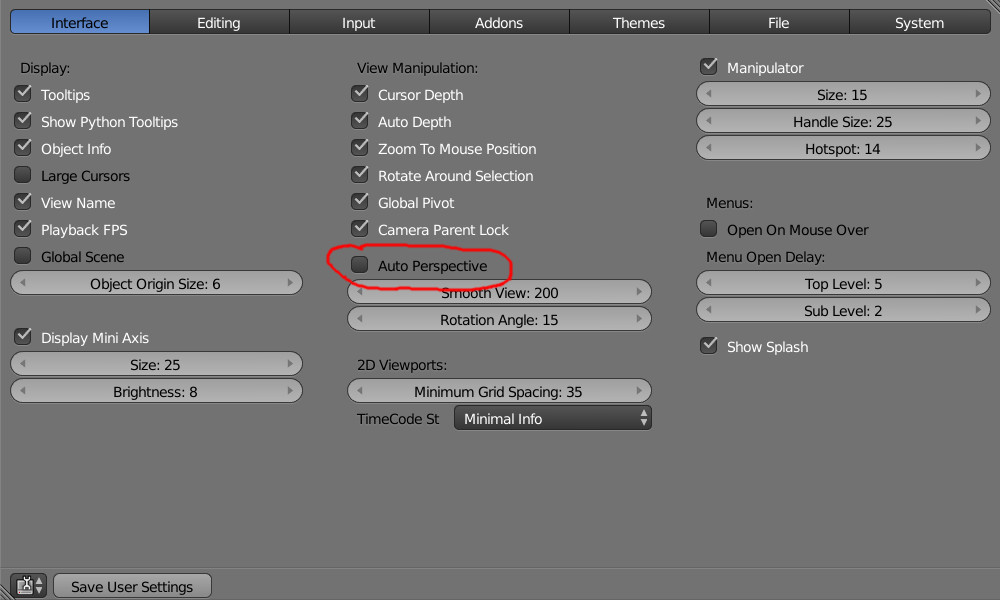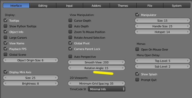 Si, justo debajo del AUTO PeRSPeCTIVE hay una opción para cambiar la cantidad de grados de rotación (15º por defecto) pero no le veo el sentido, puesto que con presionar 1, 3 o 7 ya tienes directamente cualquiera de las vistas, y con CTRL presionado, se ven las contrarias.