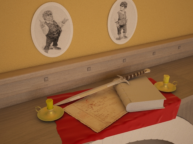 Actualizo para meter más avances de la espada en un entorno, al final me he liado un poco, pero bueno, la composición me va gustando.
