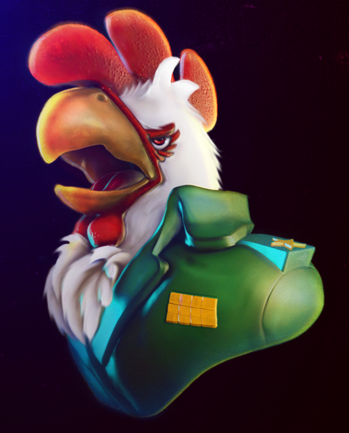 Gallinazio personaje creado por la ilustradora nathaly Molina para él cómic Jaimito ZBrush y mensaje en Adobe Photoshop.
