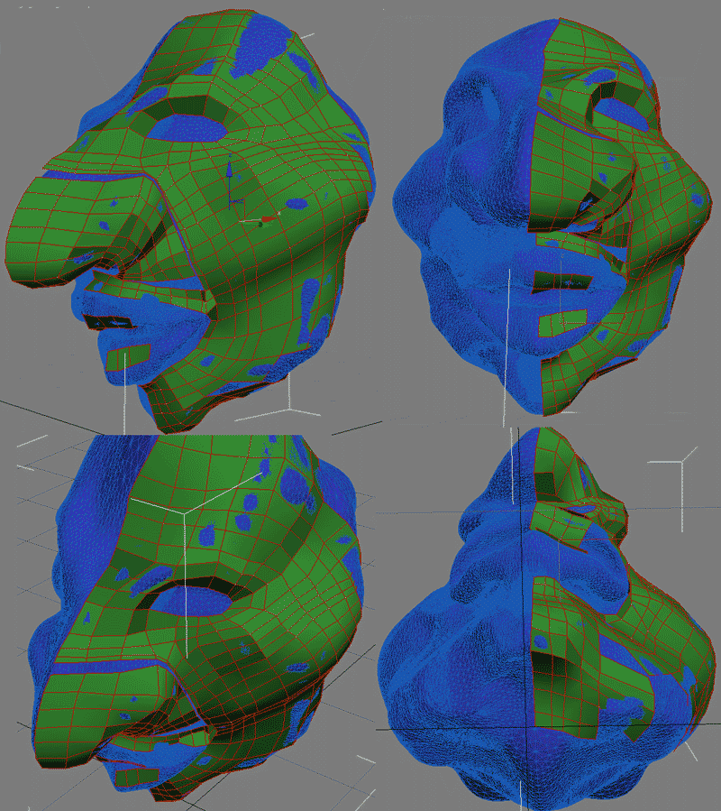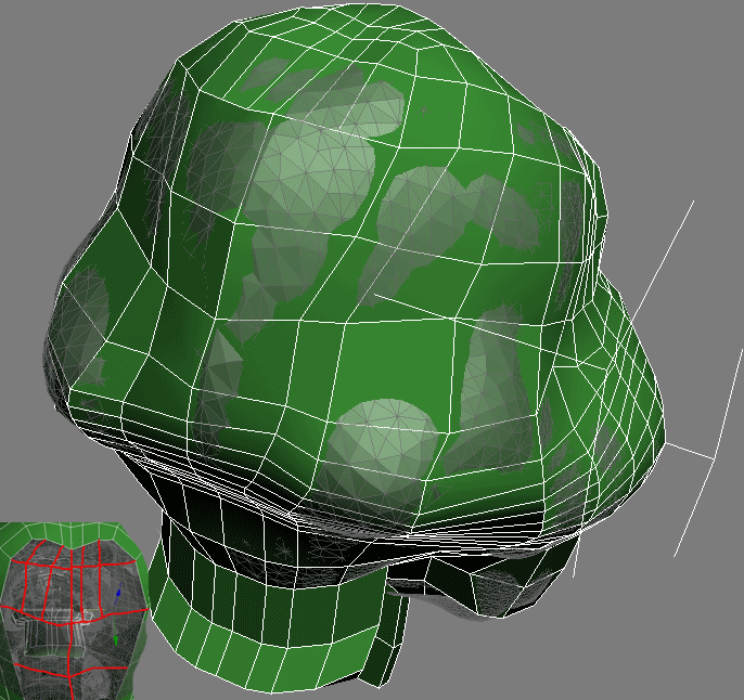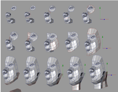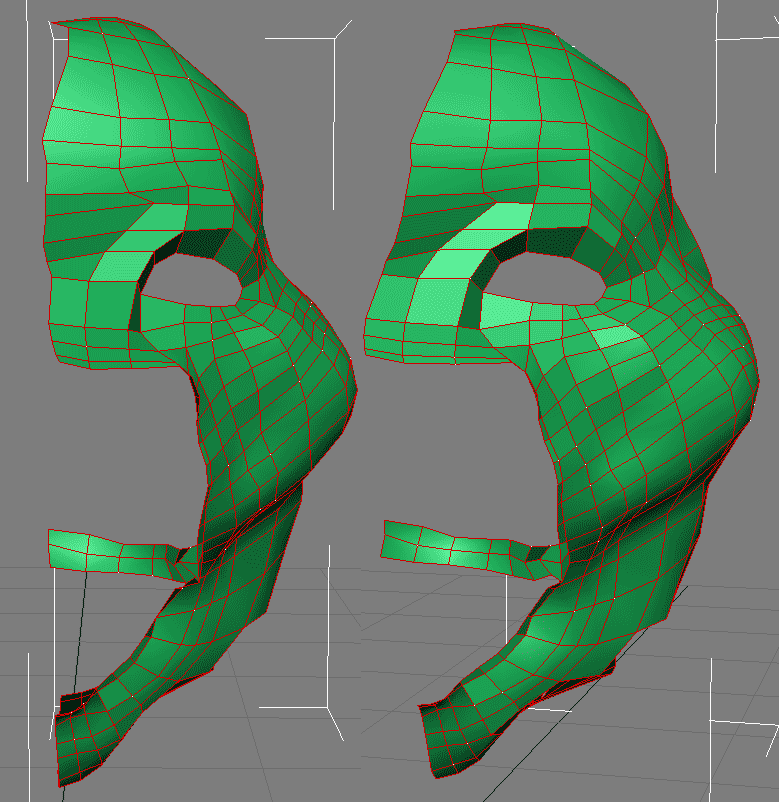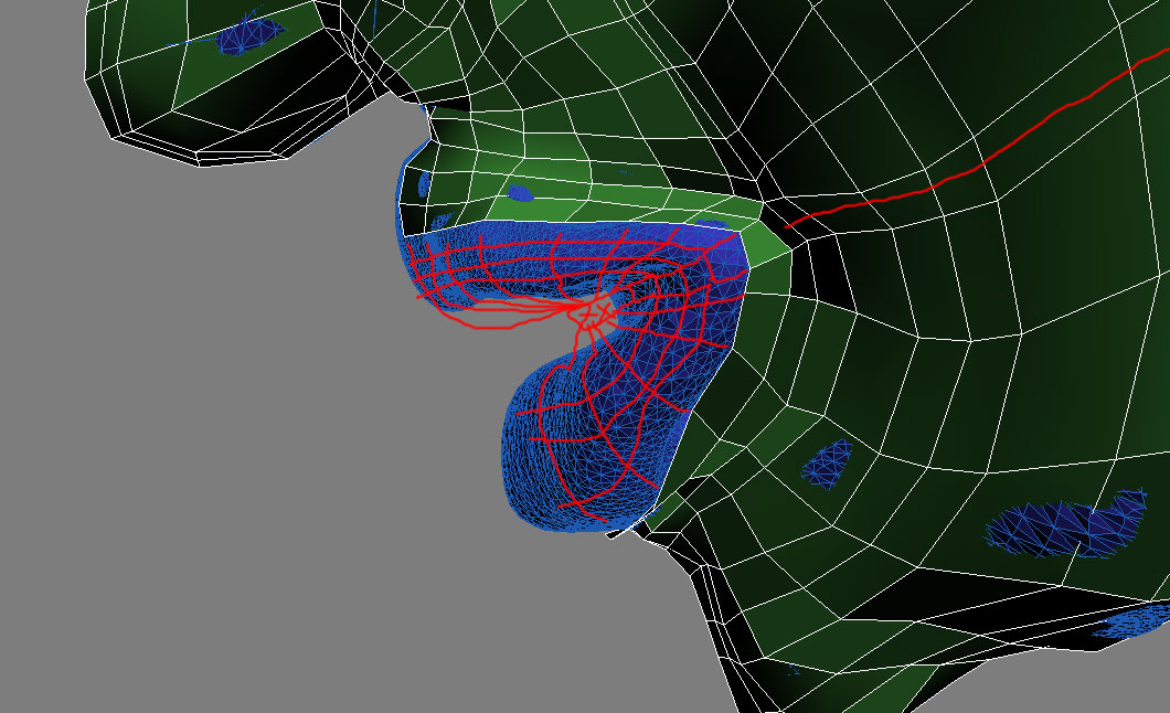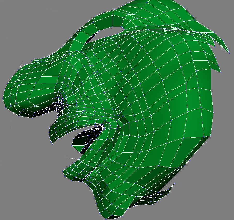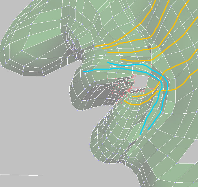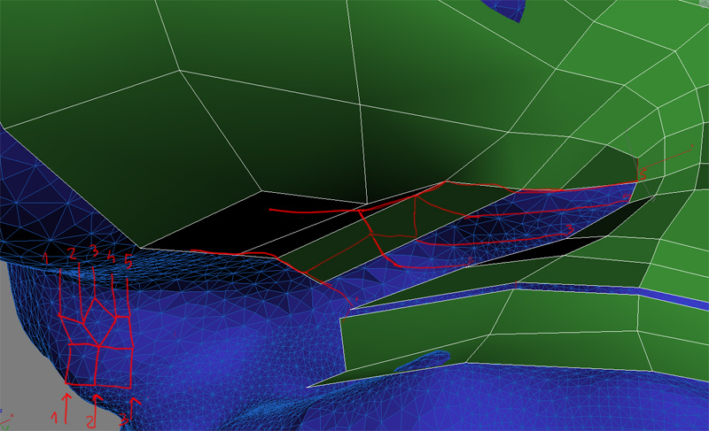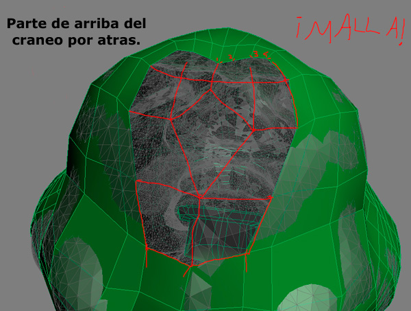 Al final, de momento, dejo la parte de atrás del cráneo así. Si se crea ahí alguna deformación rara por la topología, tampoco creo que se vea. Voy a repasar los loops de ojos.