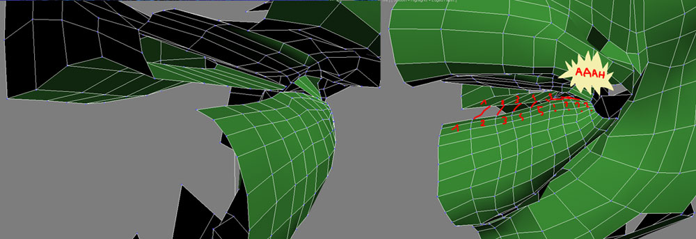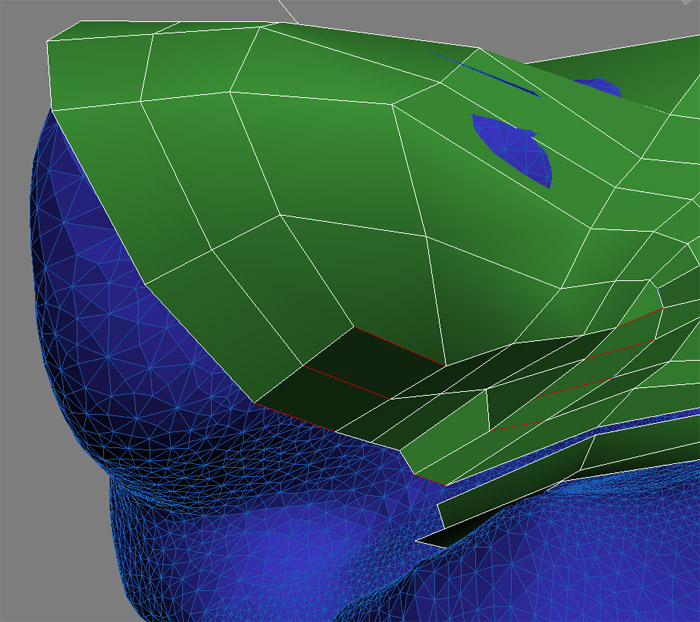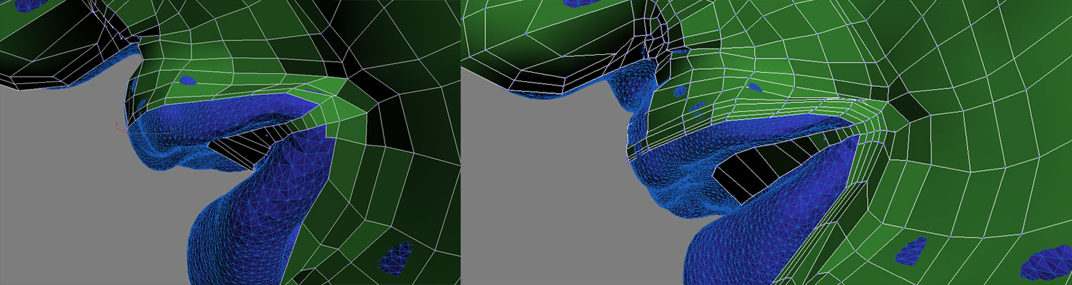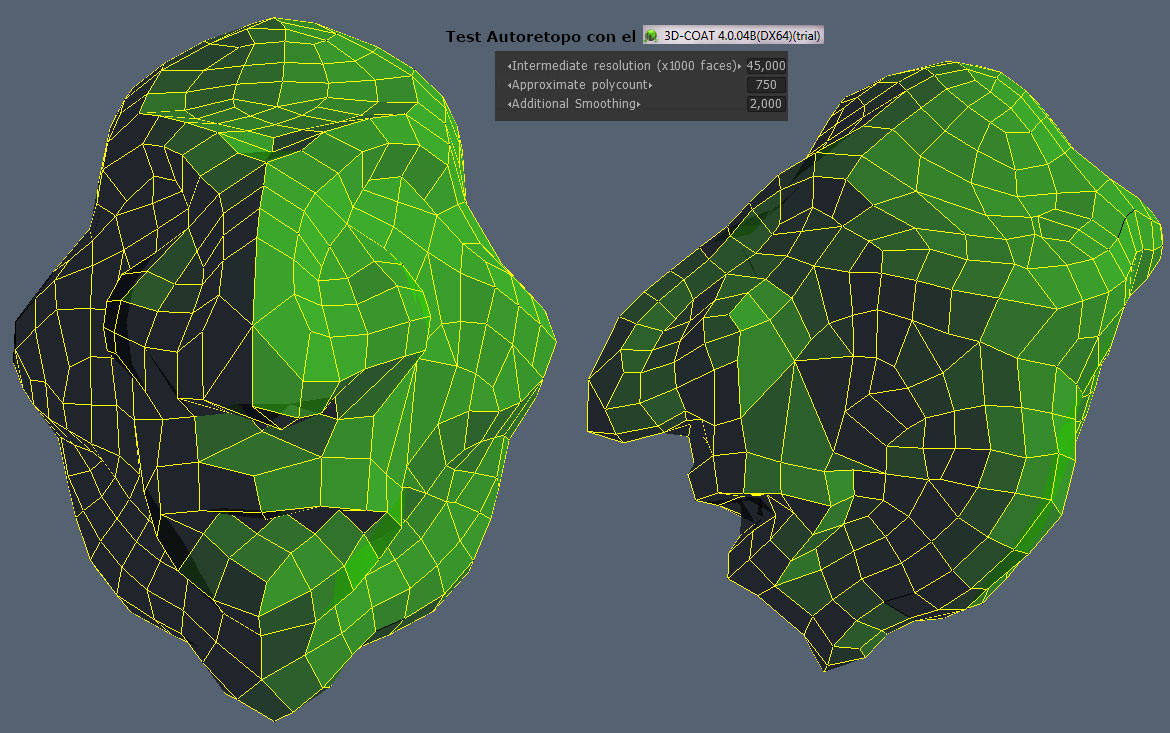 Un poco el interior de la boca, a ver cómo quedan esos labios. Demasiado subdivididos me temo. Me pregunto como hará la retopología automática del 3dcoat la comisura de los labios. ¿El 3dsmax no tiene retopología automática verdad? ¿O tal vez en la 2014 si?