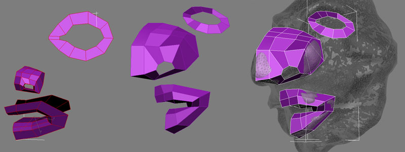 Supongo que quieres hacer un Low Poly para proyectar un mapa de normales sobre el modelo. Si tiene que ser low yo no haría los huecos de la nariz.