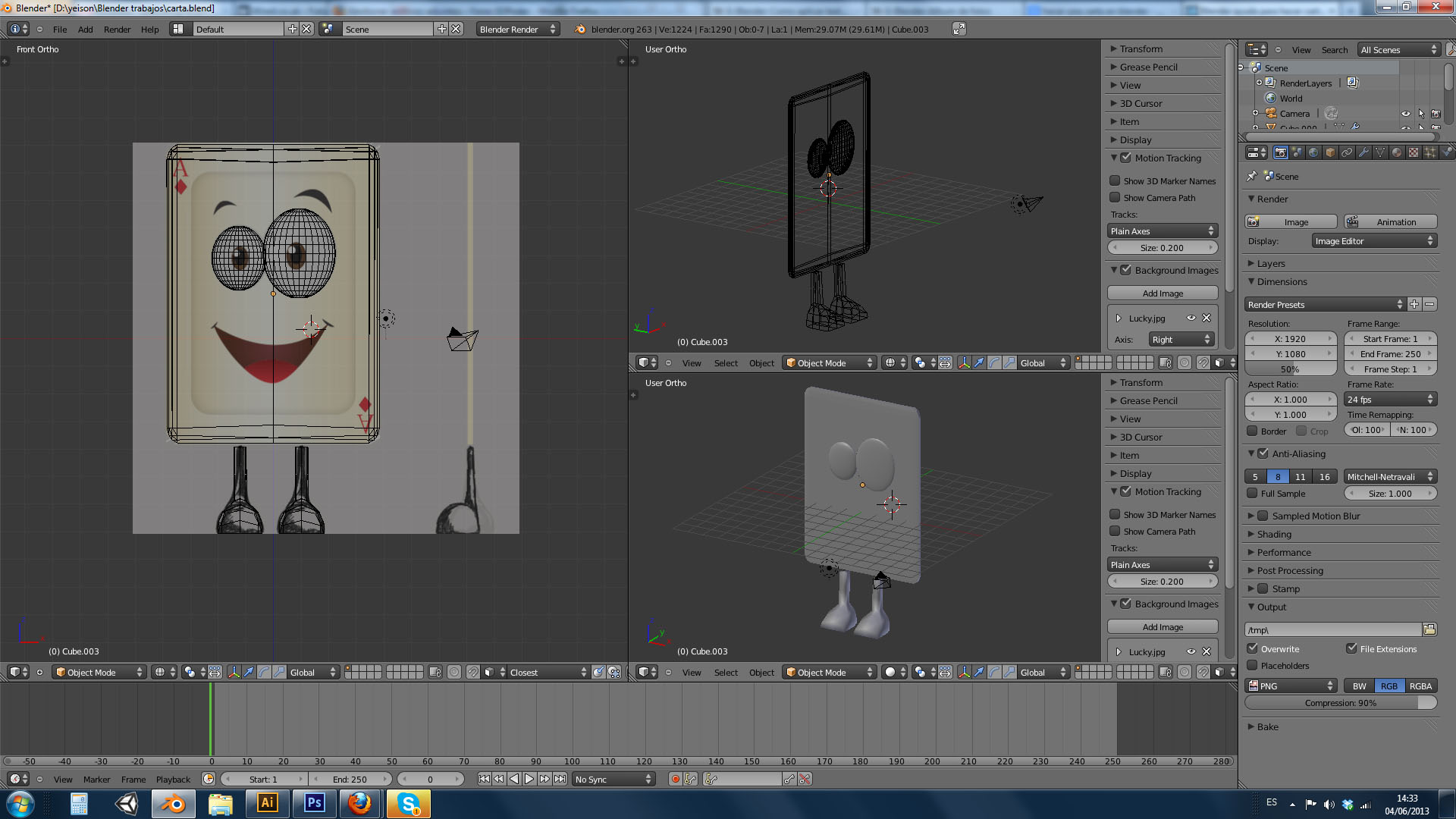 Buenas, a ver qué no te desanimen. Como bien te dicen hacer lo que requieres lleva cierto tiempo pro veo otras formas de llegar a tu destino sin tener demasiadas complicaciones. Lo primero es modelar la carta, yo uso max en eso no te puedo ayudar en Blender, pero el modelado es bastante sencillo. La parte de la cara o sea ojos y boca en vez de modelarlas, lo que haría es unas texturas ya qué eres diseñador 2d con las expresiones que quieras y, por ejemplo, si quieres parpadeo de ojos movimiento de los mismos y demás expresiones. Si lo vas a animar necesitarás crearle unos huesos y un rigging para tener mayor control de los mismos, y en vez de usar animación facial para la boca y ojos usaría texturas animadas como te dije.