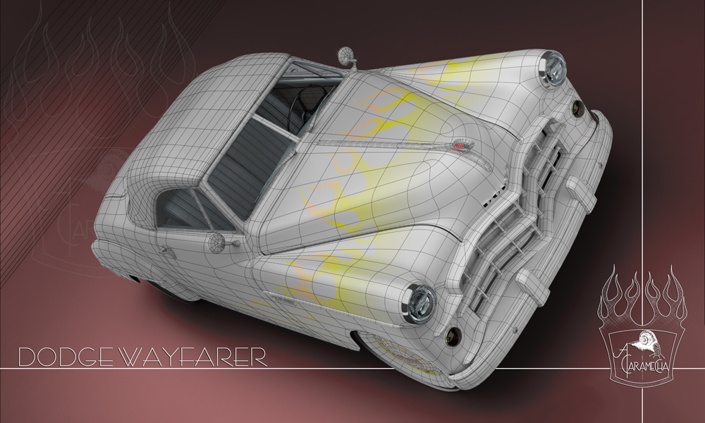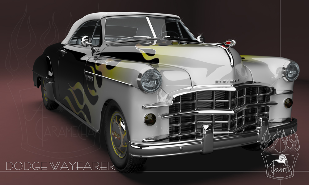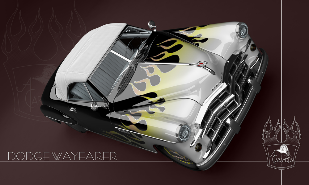 Un nuevo trabajo de modelado, en este caso un Dodge Wayfarer al que me he permitido dar un toque roquero con una pintura de llamas. Lo he modelado en 3D Studio Max y renderizado con Mental Ray.