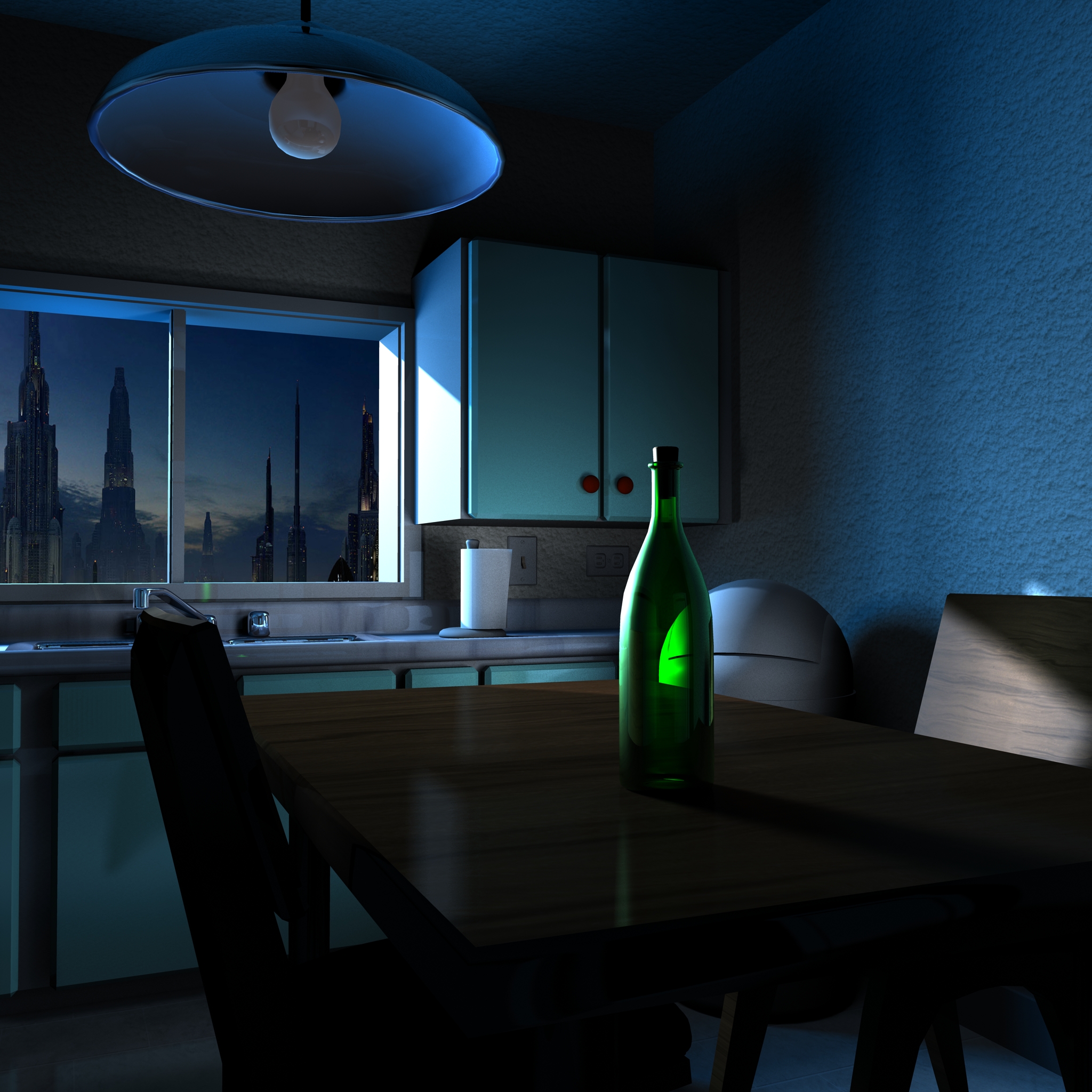 No he utilizado FG ni GI, solo unos cuantos puntos de luz y controlando donde afecta cada una con el light linking editor.
