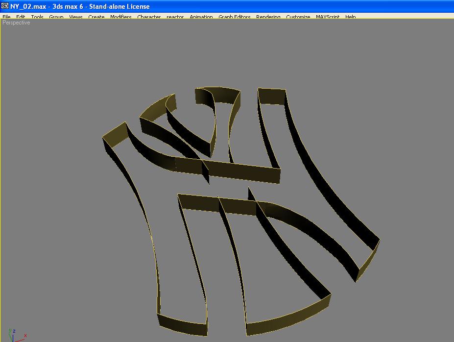 Hola gente. Mi problema es el siguiente: estoy modelando una cadena con el símbolo ny con 3ds Max 6. El símbolo estoy haciendo por Nurbs, y me he quedado un poco atascado. Tengo los laterales del símbolo perfectamente definidos, pero el caso es que no me acuerdo de cómo hacer la superficie. Es decir, ¿cómo cerrar el objeto.