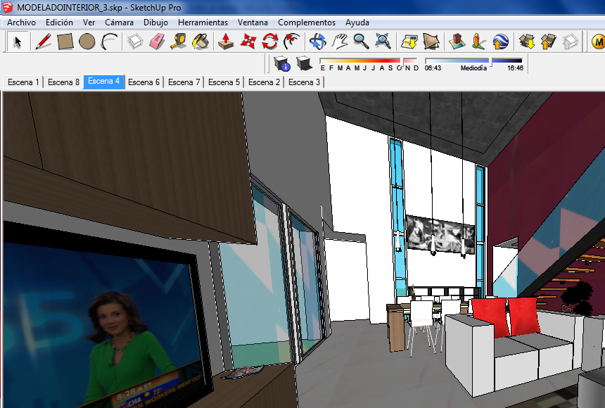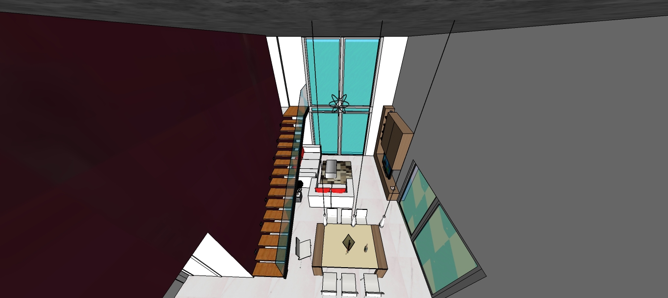 Este es el resultado obtenido desde la escena 4 y al lado te pongo el SketchUp para que veas que tengo doble altura y no sale me corta por las escaleras. Otro tema:me gustaría si alguien me puede ayudar que resuma unos pasos a seguir en cuanto a qué parámetros tocar para renderizar en interior y exterior. Ya qué soy un gran novato en esto. Muchas gracias compañeros.
