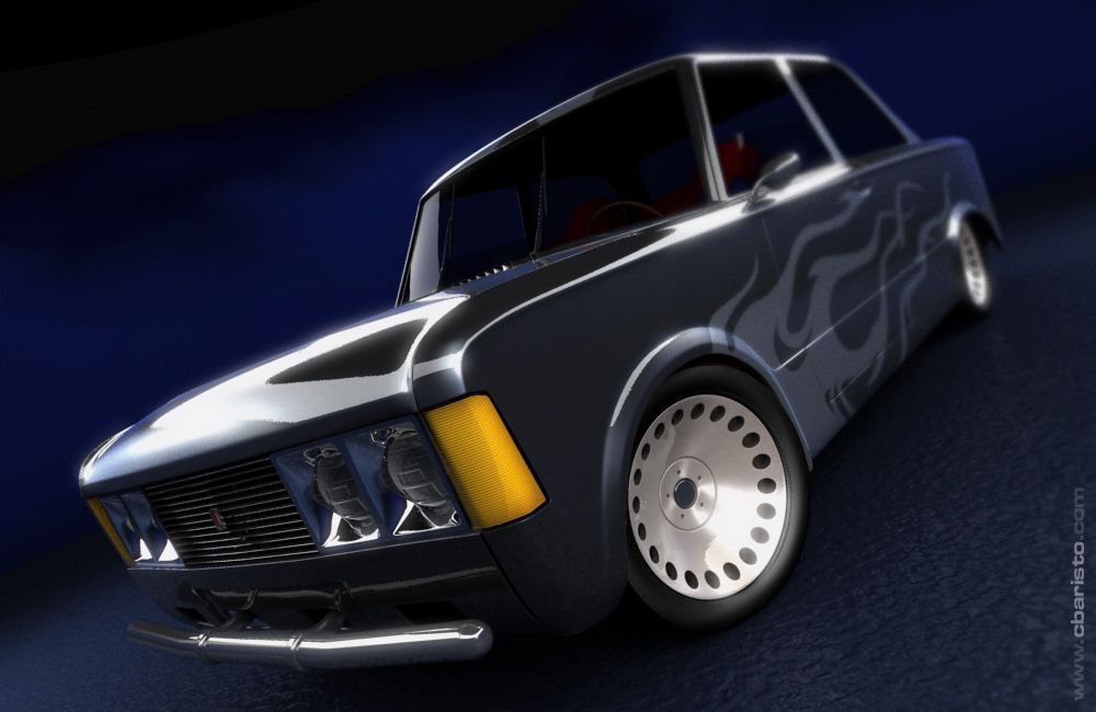 Hola. Les presento a mi Fiat 125. Quería representar un auto un tanto antiguo con una personalización discretea. Está hecho en 3d Studio Max r6 y renderizado con Vray.