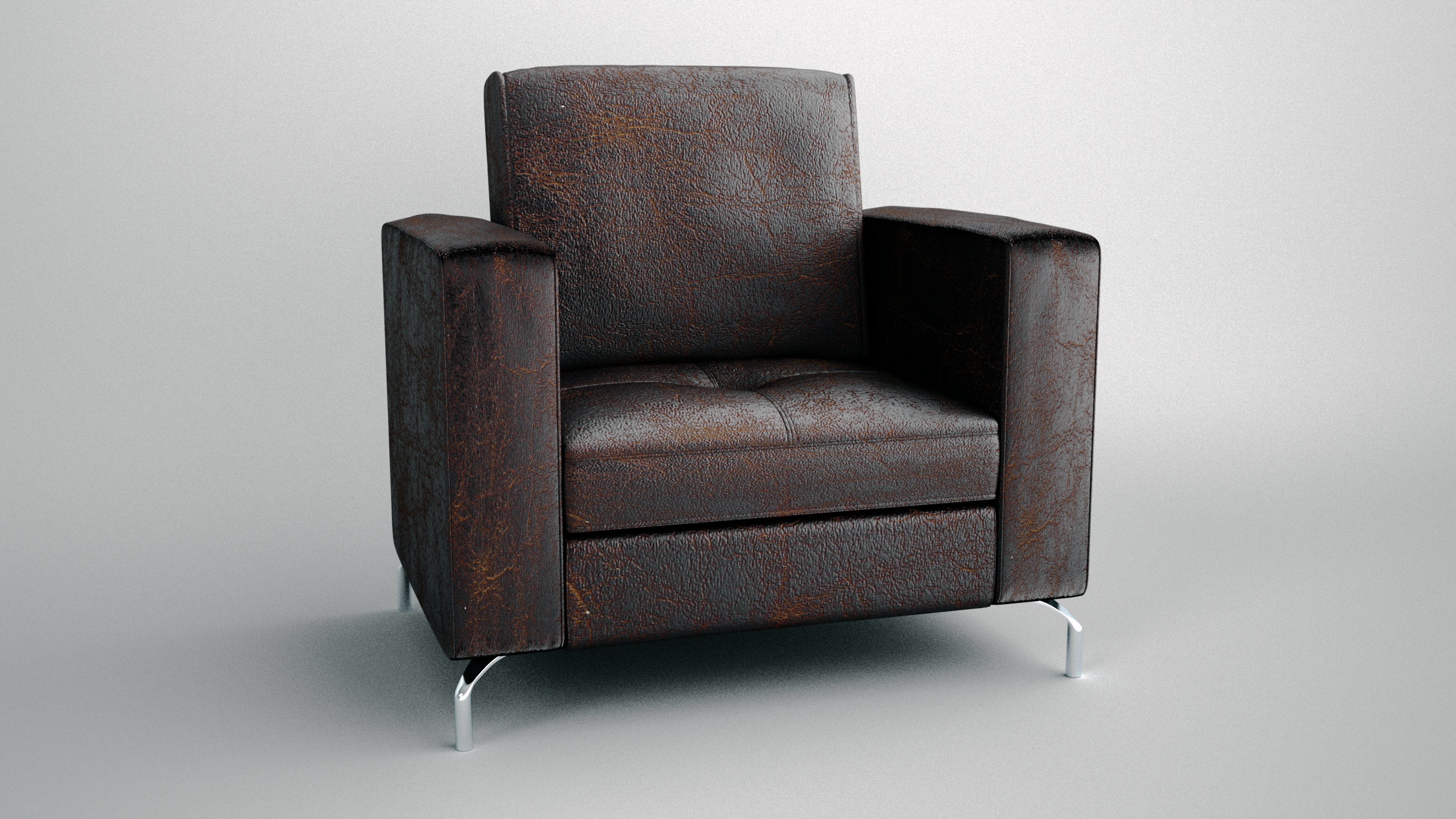 Armchair de cuero modelado en Blender y renderizado con maxwell render