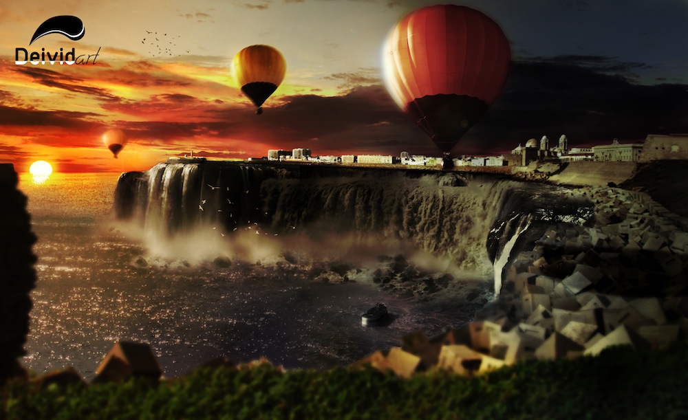 Esta obra del Campo del Sur de Cádiz, recrea un atardecer con cataratas para aumentar el dramatismo de la escena y resaltando el contraste de luces y sombras.