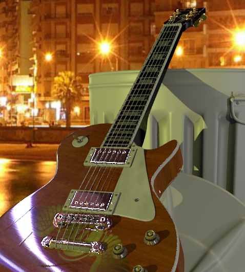 Le cambiaré cuando llegue el momento el reflejo de la guitarra por algún HDR nocturno; ya he pillado uno de Internet. Y si para él final estuviera oscuro, le daría algún toque con el compositor. Cuando le aplique el efecto de fuego a la guitarra dlgmax, quizás la escena te parezca con más sentimiento. La idea de poner la guitarra y un amplificador también lo pense, pero está muy machacada la idea. Al principio me perfile un guion; como si alguien (guitarrista) estuviese cabreado y la quemase fuera, en una noche. Si os pasara lo mismo, donde la pondriais? Muchas gracias por vuestros comentarios, saludos.