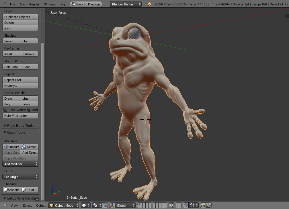 Por pasar el rato Un sapo algo humano Blender 2.68 Dynotopo.