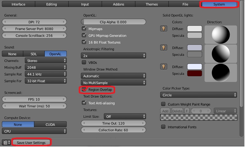 User preferencias--- pestaña System--- activar opción Region Overlap--- save user settings, eso es todo hasta la próxima.