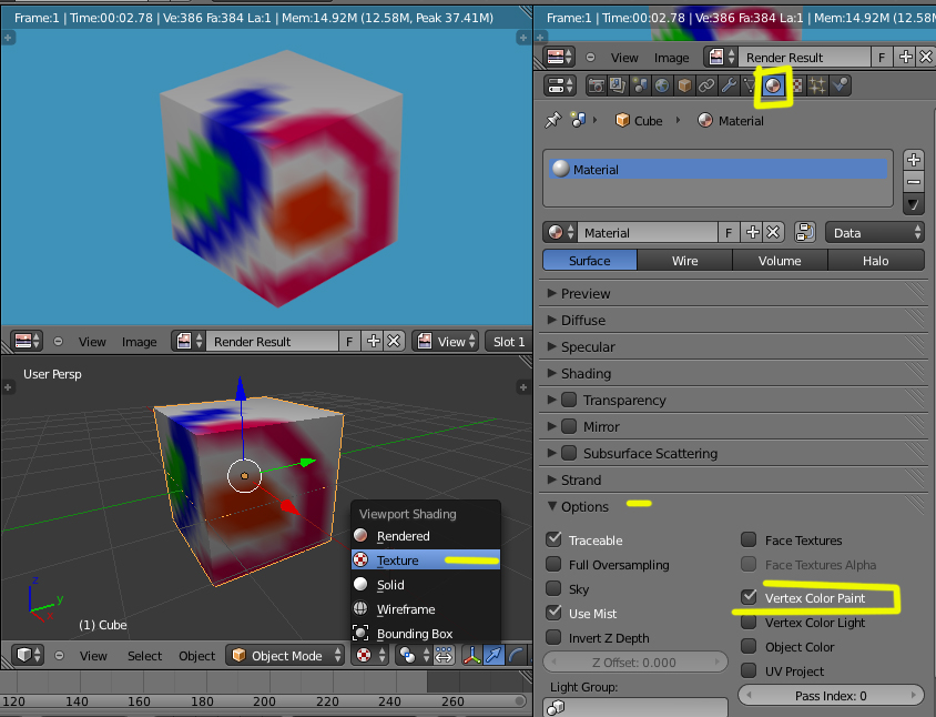 Yo estoy pintando mi personaje en Blender, en el mode Vertex Paint y ya está, pero después cuando cambio al mode Object Mode no me sale pintado, simplemente me sale gris (como es por sí el objeto y no como lo he pintado yo). Necesito saber cómo lo he de hacer para qué se vea en los otros modes también. Gracias y espero que alguien me pueda ayudar. Gracias de antemano. Saludos.