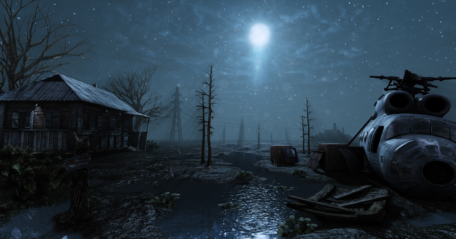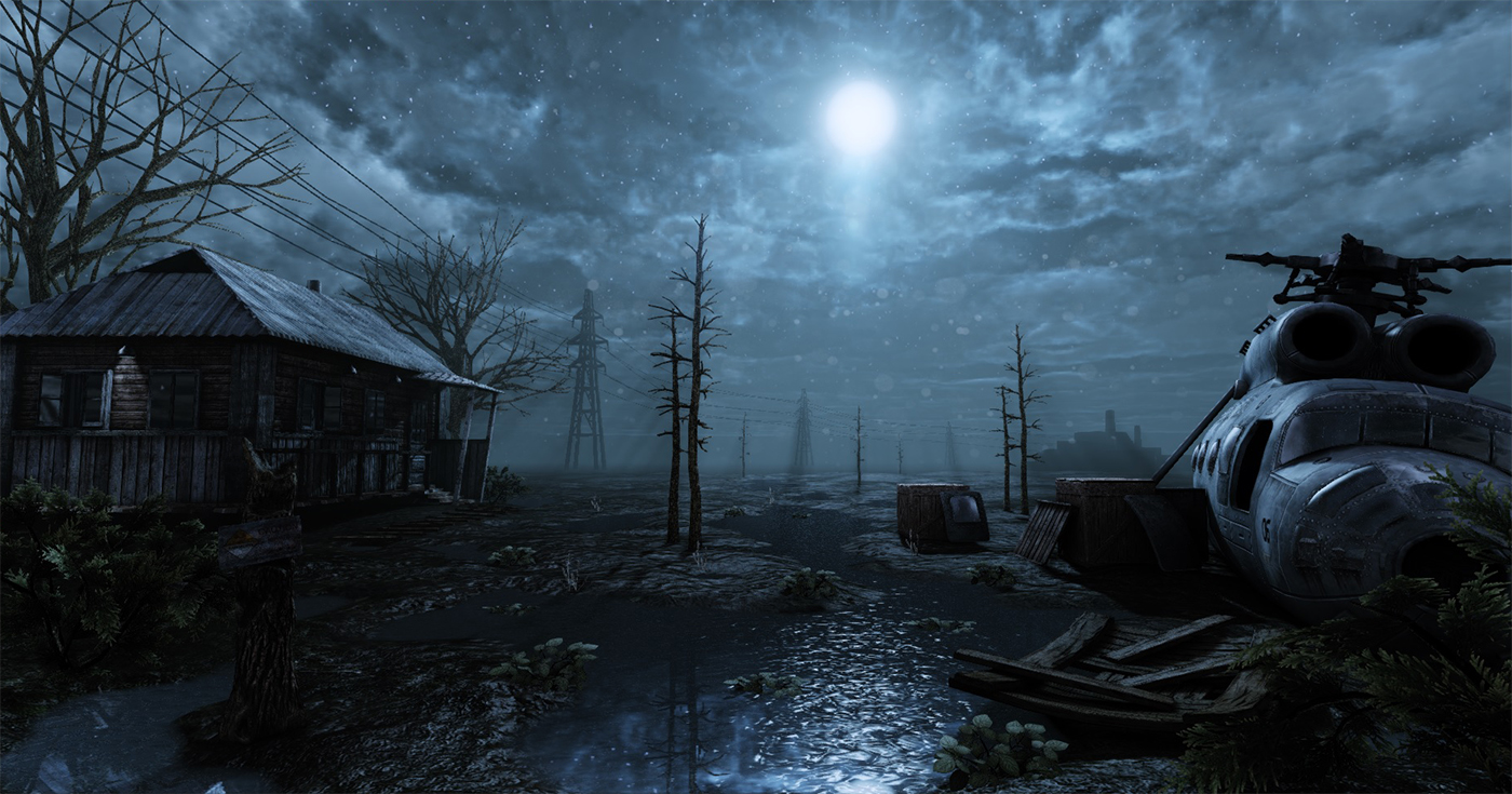 Como environment, lo veo demasiado abierto y descubierto, una llanura abierta con árbols, ni una valla, ni unos bloques de hormigón, ni zanjas, ni trincheras ni un cambio de nivel, ni colinas, ni unos fondos de montañas o bosques con varios planos de profundidad para jugar con la profundidad al acercarse, alejarse. Veo un helicóptero estrellado y una cabañita. Y unos timidos árboles y hojitas que parecen todos iguales. Que me gustaría ver; algo que le de misterio, que le de emoción, con partes que te hagan imaginar cosas, de dónde puedan salir montruos de ocho patas, con algunas otras zonas donde puedas cubrirte si te disparan, porque como te intentes cubrir detrás de uno de esos árbols. Algo que digas, voy a mirar ahí, a ver si hay algo de munición extra.
