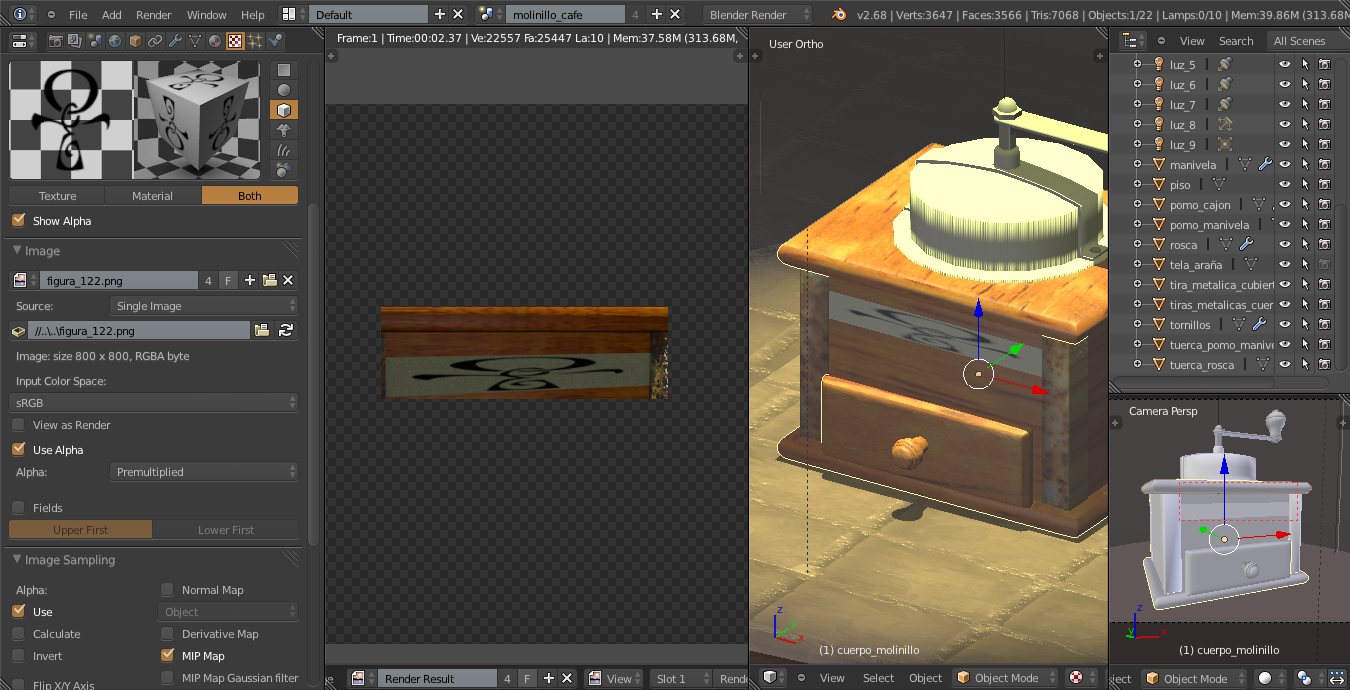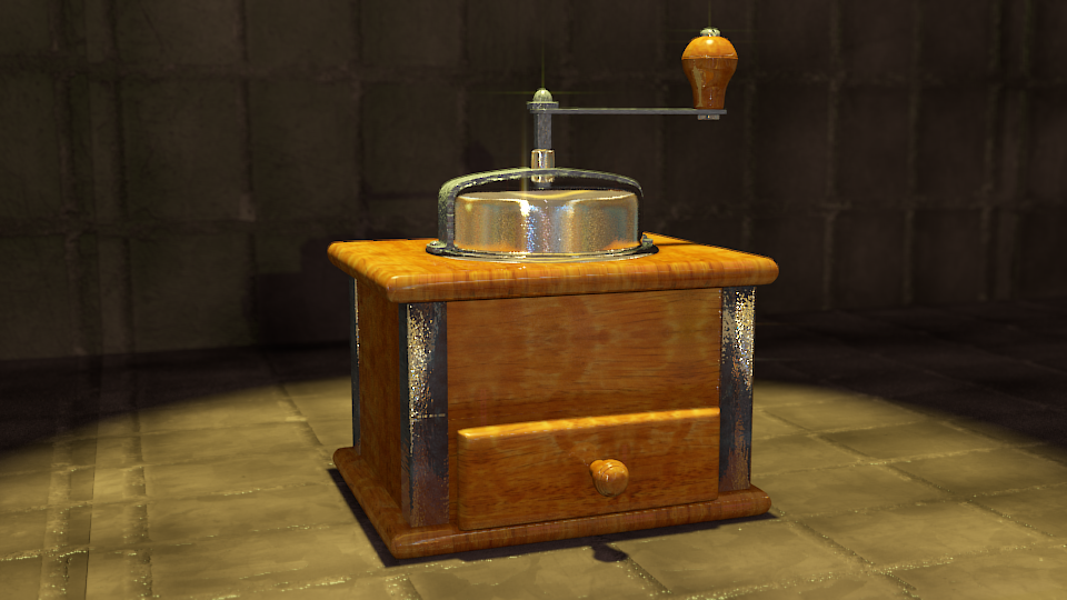 Le he puesto un poco de bump a la madera y le he bajado el mirror. Siento que le falta algo. Algún comentario no estaría mal. Saludos.