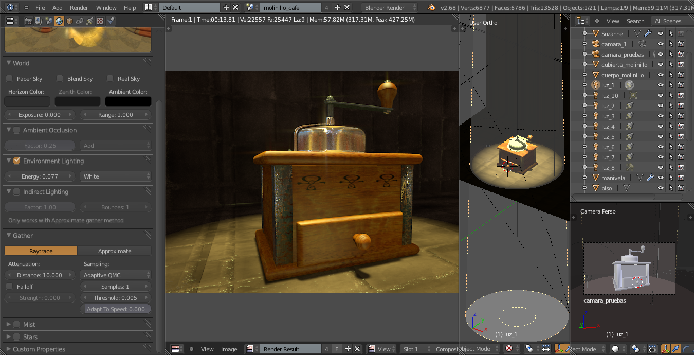 Sigo a la espera de terminar este proyecto. Es obvio que le he añadido más objetos a la escena.