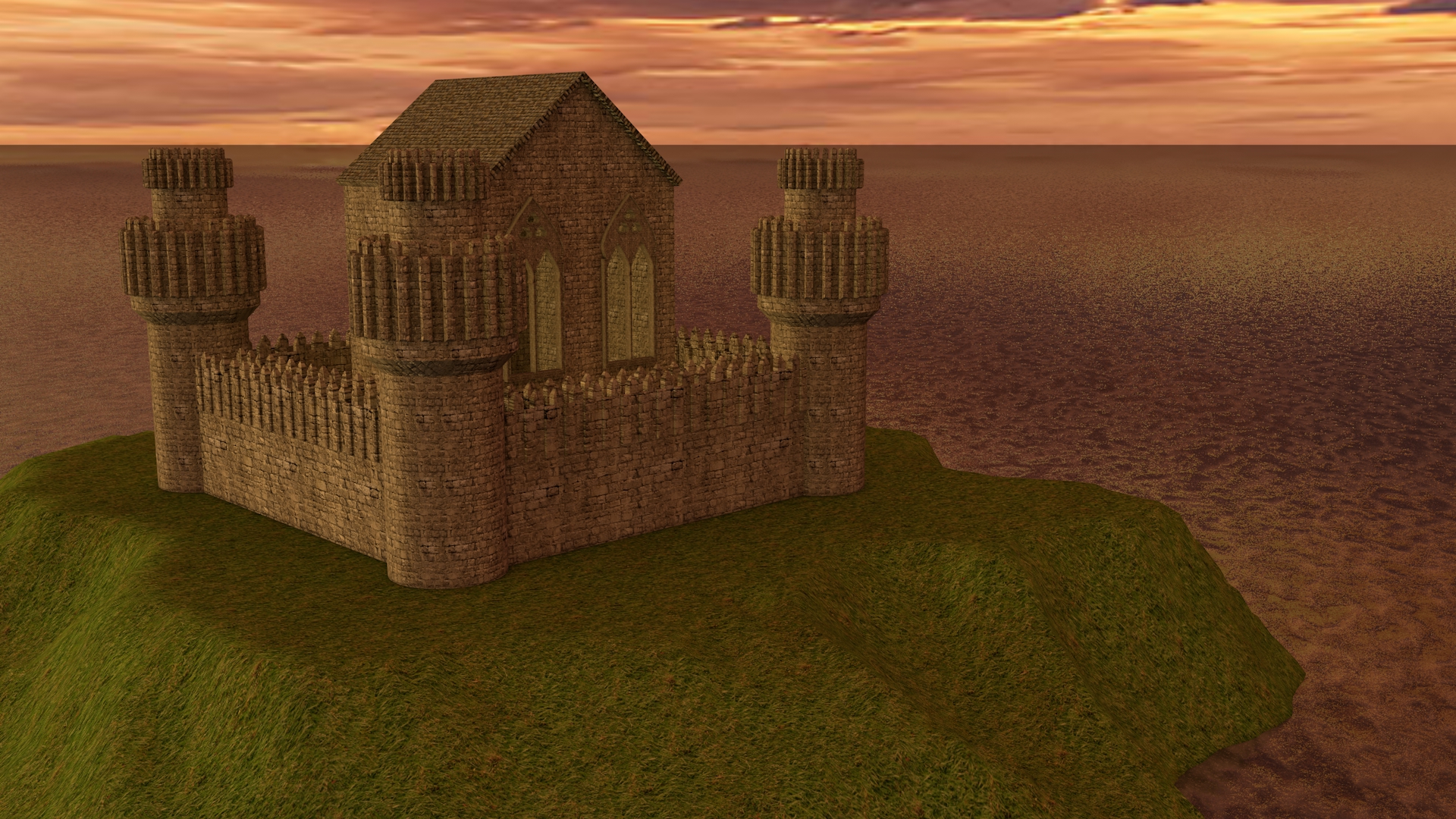 Me gusta la profundidad y la luz que tiene, pero creo que podrías haberle puesto algo de vegetación alrededor del castillo.