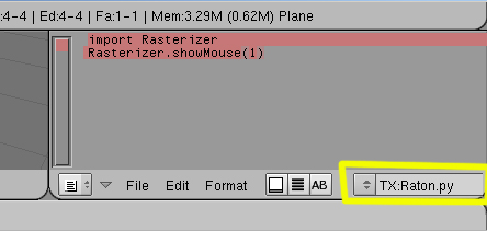 Lo primero que hacemos es colocar el script de Python llamado Raton, py, para qué al activar el game, se vea el puntero del ratón en pantalla.