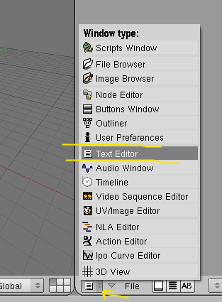 Primero abrimos Blender, dividimos la pantalla y abrimos el editor de texto.