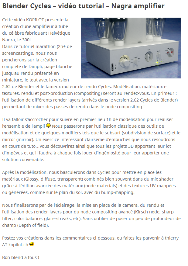 Buenas, antes que todo está muy bueno el modelado y el trabajo en detalle que hiciste, lo vi paso a paso, aunque no comente nada en su proceso (nunca use Blender).