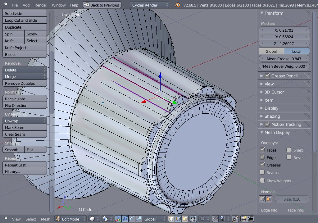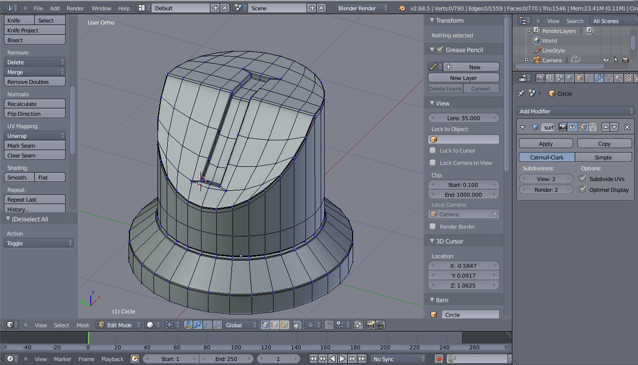 Es un modelado para meterles el modificador bolean, pero hasta ahora no lo he utlizado debido a lo mal que quedan las mallas. Lo he hecho de esta manera y no sé si es la correcta. A ver si a alguno se le ocurre hacerlo mejor, de otra manera. Aunque no sé cómo meterle las muescas que le faltan, ya que, cuando meto loops, me salen en el cilindro algunas líneas deformando un poco su geometría. Saludos.