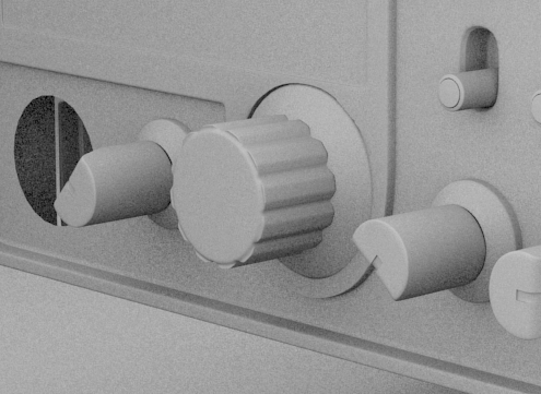 Se ve muy sólido el modelado. Solo que la perilla frecuencias creo que no era tan redondeada en sus bordes. Pero como tienes un original, solo sea una apreciación mía. Saludos.