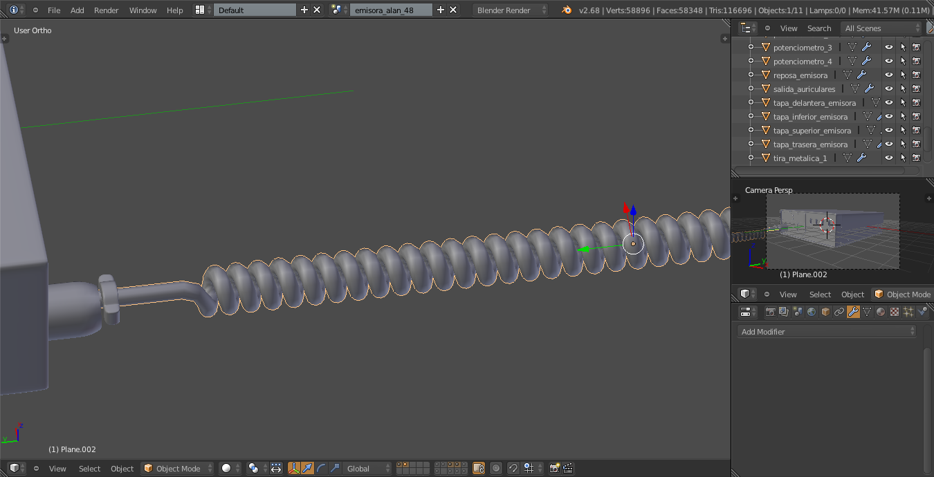 Otro ratio de modelado y ya va quedando menos del protagonista de la escena. El micro, los cables de alimentación y antena, y seguro que algunos retoques me quedan.