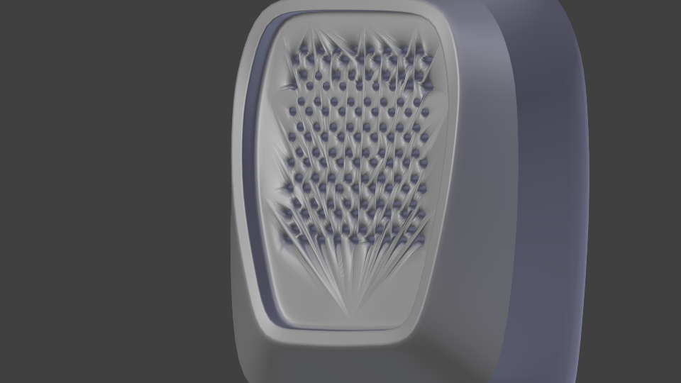 Mucho mejor. Para conseguir el efecto de esa parte de los botones baja el Amount del Gloss (0.8 estará bien) y baja el Reflectivity (0.6 quizás). Ponle también un color gris al Reflectivity.