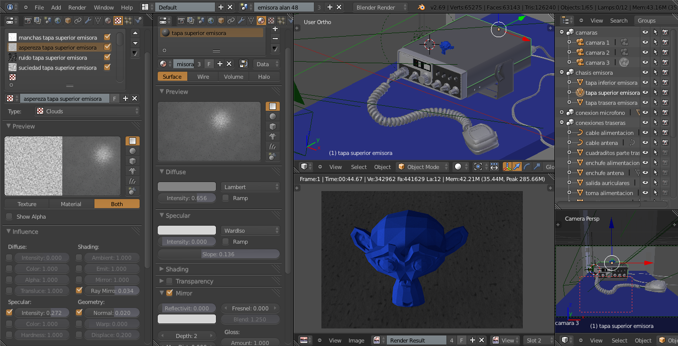 Bueno, aquí daría fin a la parte de modelado de la emisora Alan 48. Necesito comentarios sobre el modelado, proporciones o algún chiste que otro, ya que pasaría a la iluminación y a las superficies. Cuanto trasto tiene la condenada. Saludos.
