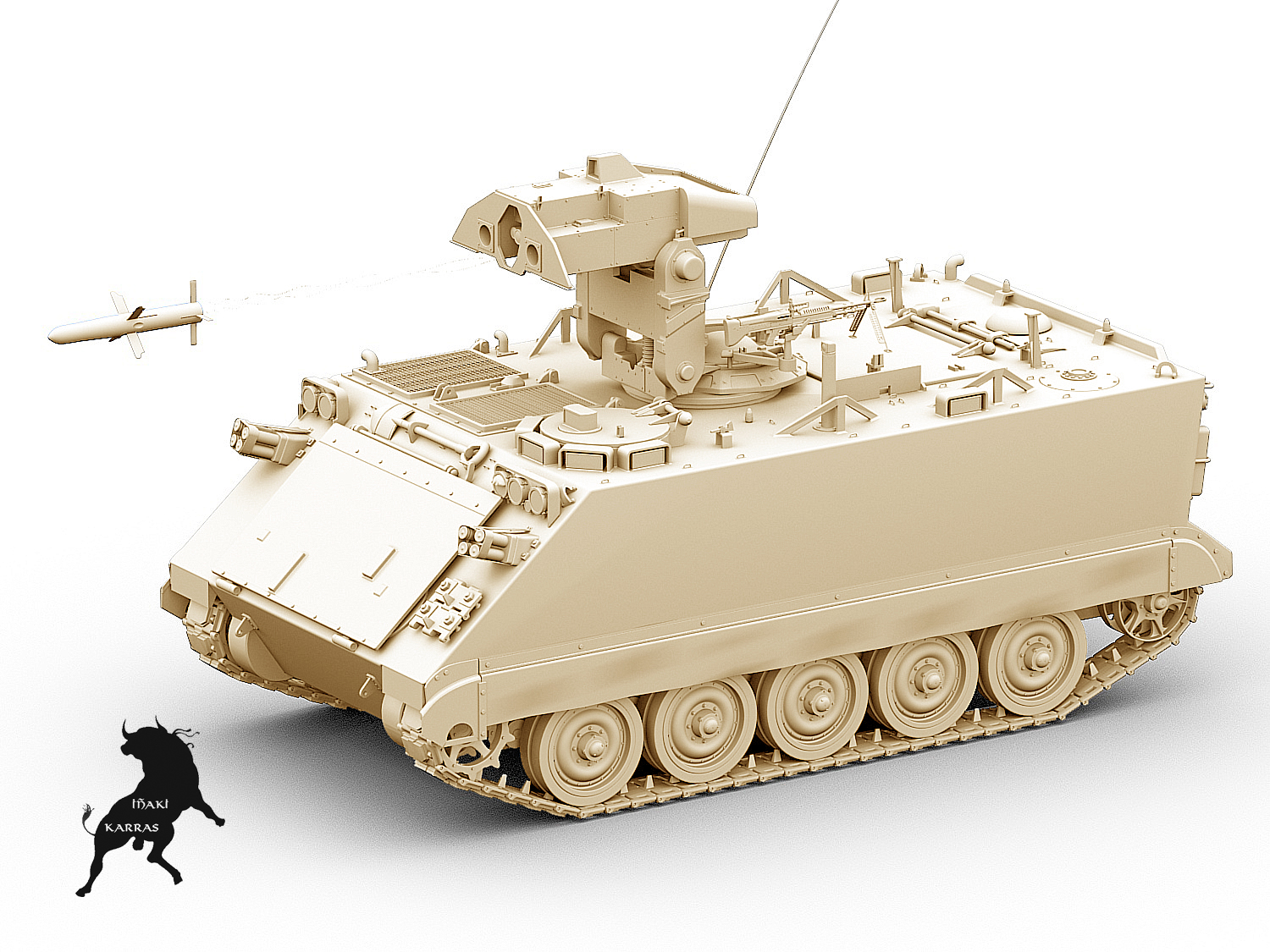 Fíjate en las pocas versiones que hay en el TurboSquid de él. Ya estoy con la versión antitanque M-901 HammerHead con una torre TUA que ya tenía modelada. Es una mina éste modelo.