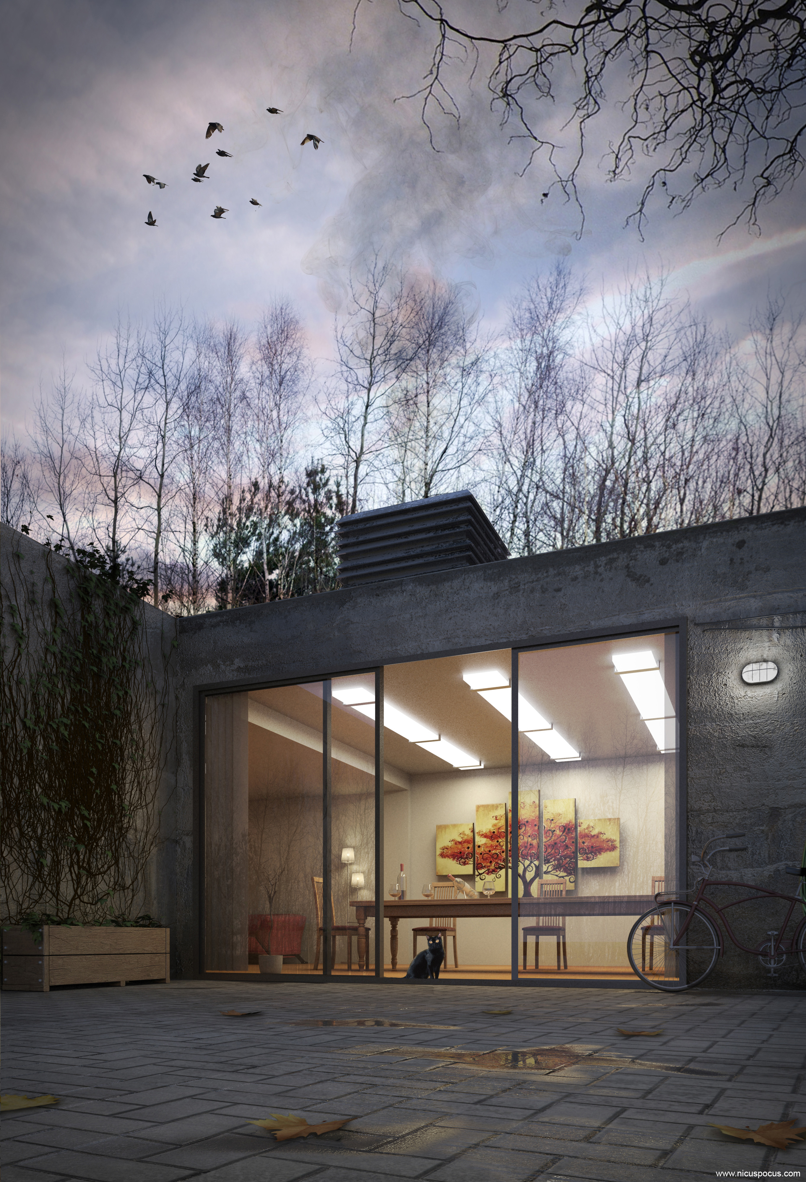 Gracias por el comentario. Sep, creo que tengo que retocar aún alguna cosa qué otra, además, el suelo de la calle sigue sin convencerme del todo, creo que igual pruebo a poner una persona andando hacia la casa de espaldas (que se vea la silueta pbásicamente) o algún gato más andando. Saludos.