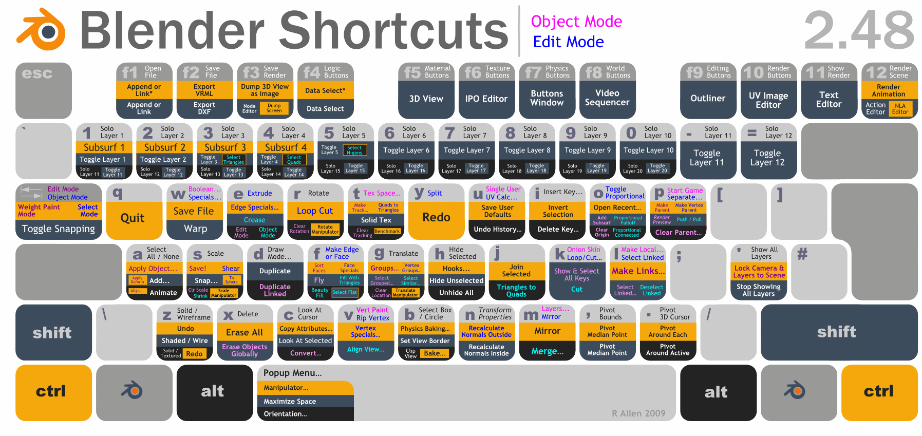 Si haces una búsqueda en Google con Blender Shortcuts te sorprenderás.