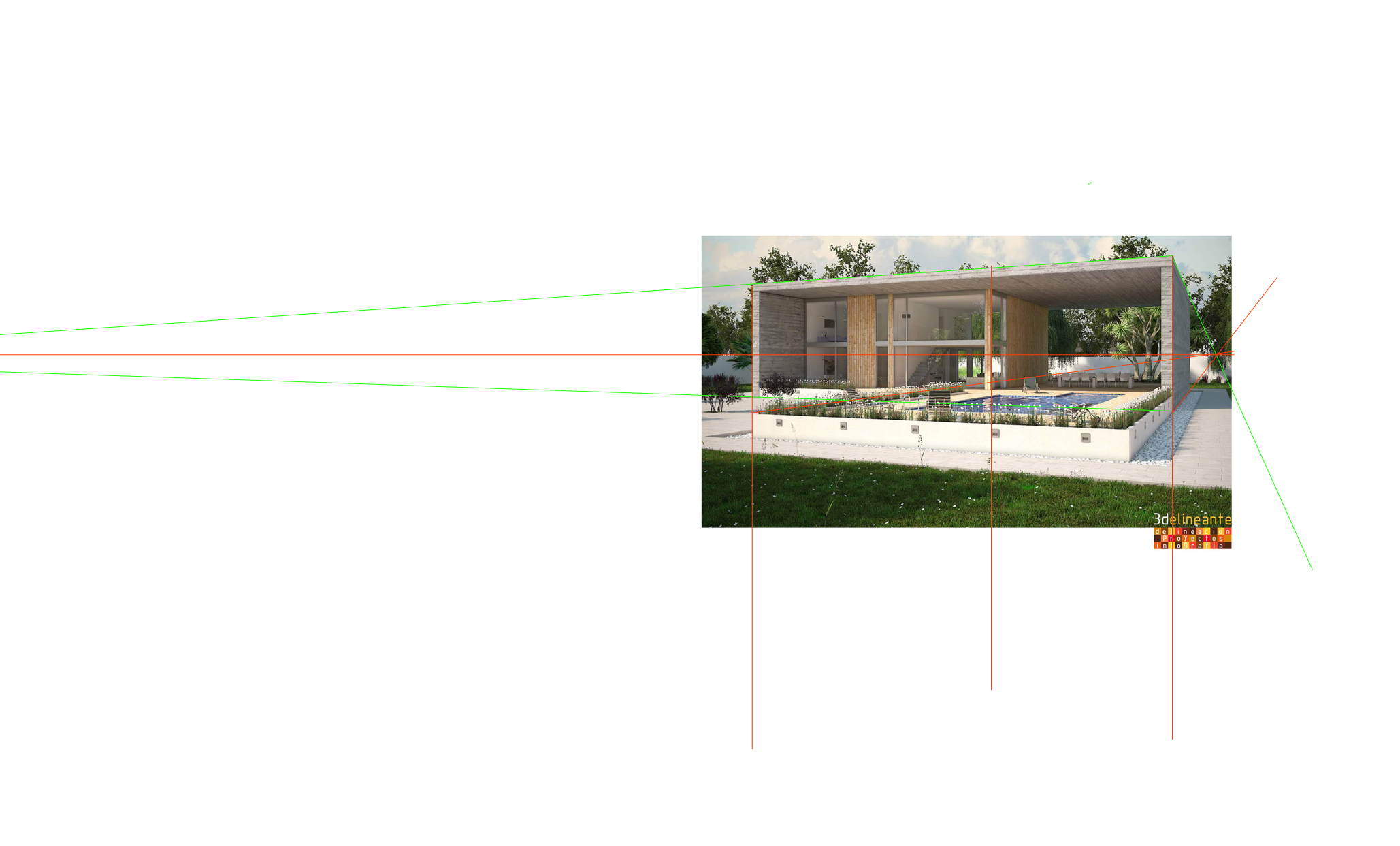 Con tu permiso y con todo respeto, si te molesta esto, la retiro, pero he querido explicarte otro problema, que ha mi particularmente no me gusta, suele ser un efecto generado por tener las líneas de perspectiva fugando a dos puntos, como sabrás siendo delineante. Donde estos dos puntos fugan, es la línea de horizonte digamos virtual de tu imagen, en tu caso al estar un punto más alejado del segundo, se genera un efecto de estiramiento, perspectiva caída u horizonte elevado (técnicamente en dibujo se la conoce como cónica u oblicua, es decir, parece que tú render se cae por la izquierda de este, como si se cerrara y también ocurre en perspectivas a 3 puntos de fuga, pero ya con más razón, ya qué buscamos ese efecto, en vistas contrapicadas y picadas, donde tenemos dos horizontes de fuga, el que forma la fuga de la altura, suele estar muy cerrado.