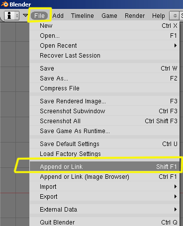 APeND OR LINK: Para copiar un objeto desde un blend a otro.