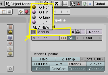 Si lo que cargamos es un Material, luego solo tenemos que buscarlo en las flechas que hay al lado de MA: