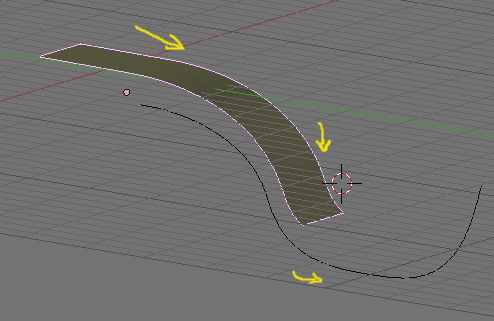 Ahora si desplazamos el plane en la coordenada correcta se irá deformando de acuerdo a la curva.