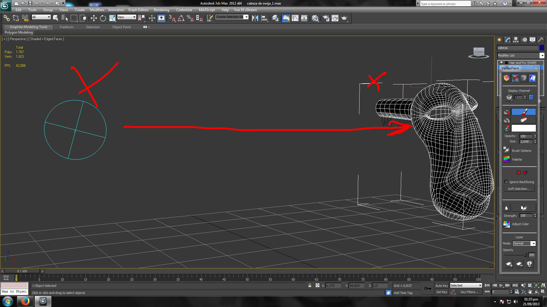 Hola atodos podría alguien ayudarme con esto: he creado un personaje en 3dsmax y le he hecho unas UVS le he aplicado una textura sencilla para luego ponerle pelo, pero el problema es que le quiero aplicar diferentes densidades de pelo y uso Vertex Paint para ello solo que como ven en la imagen el pincel no cae sobre el objeto sino que cae mucho más lejos y no pinta nada bien, la pregunta es como solucionar esto.