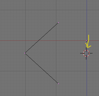 Quedarán tres vértices. Con el BDR, selecciona el vértice central y muévelo (presionando primero la tecla G) hacia un lado.