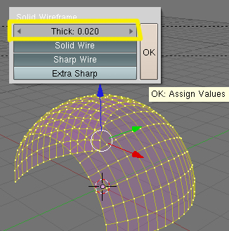 He creado una media esfera, para hacer una estructura tipo rejilla. Y le voy a cambiar el valor a 0.020 para qué sea un poco más grueso. Cuidado al subir estos valores, pues pude dar formas no deseadas.