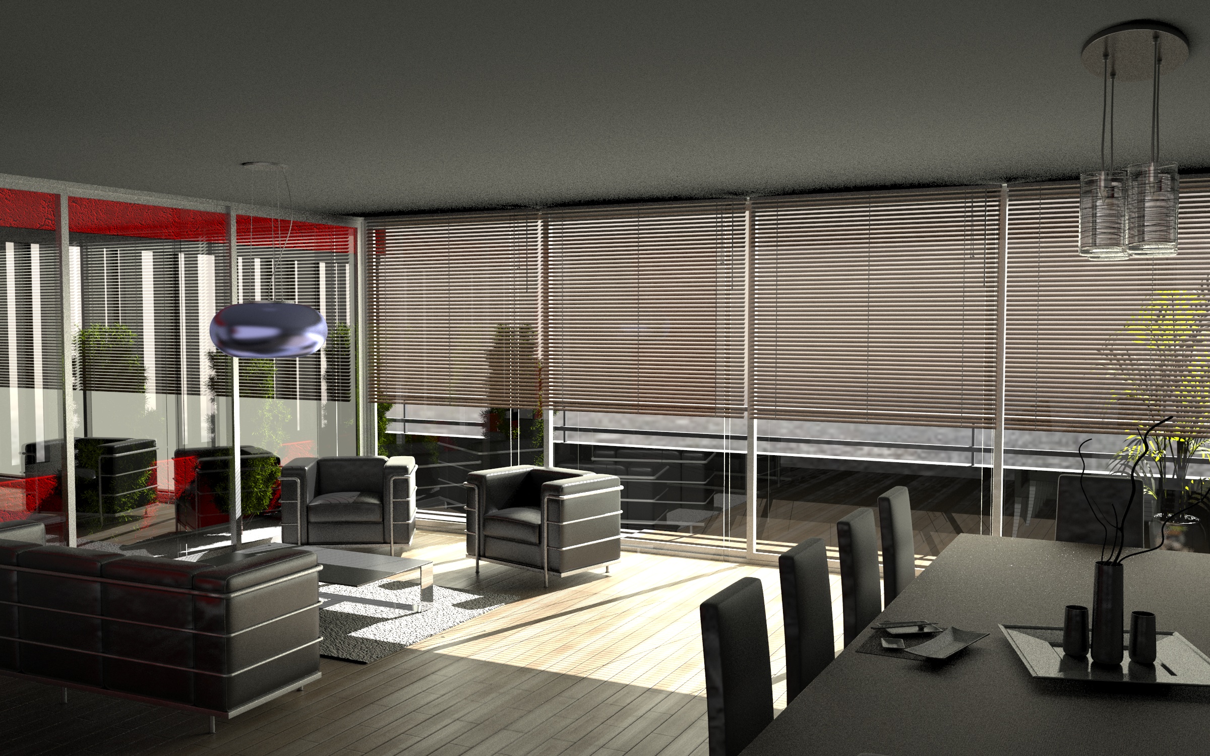 El problema se puede ver en la mesa si se hace zoom, en los marcos de las ventanas, en el cielorrazo cerca de las ventanas y si hace mucho zoom en los sillones.