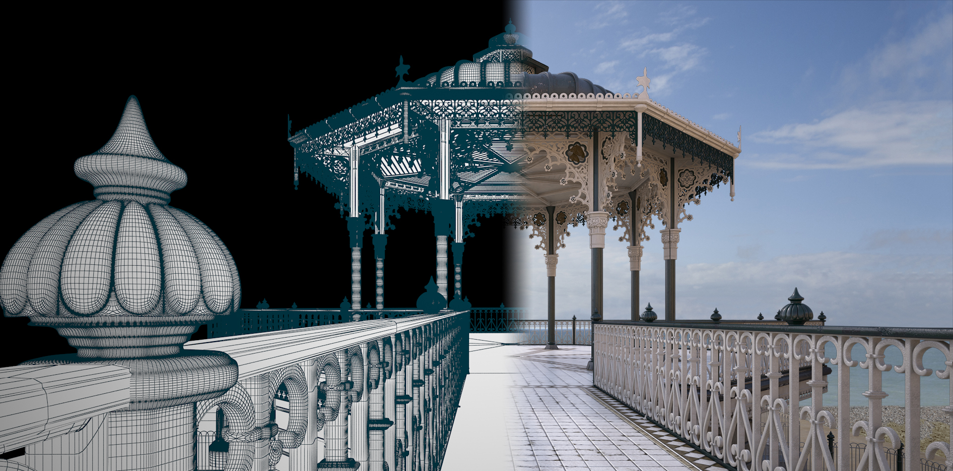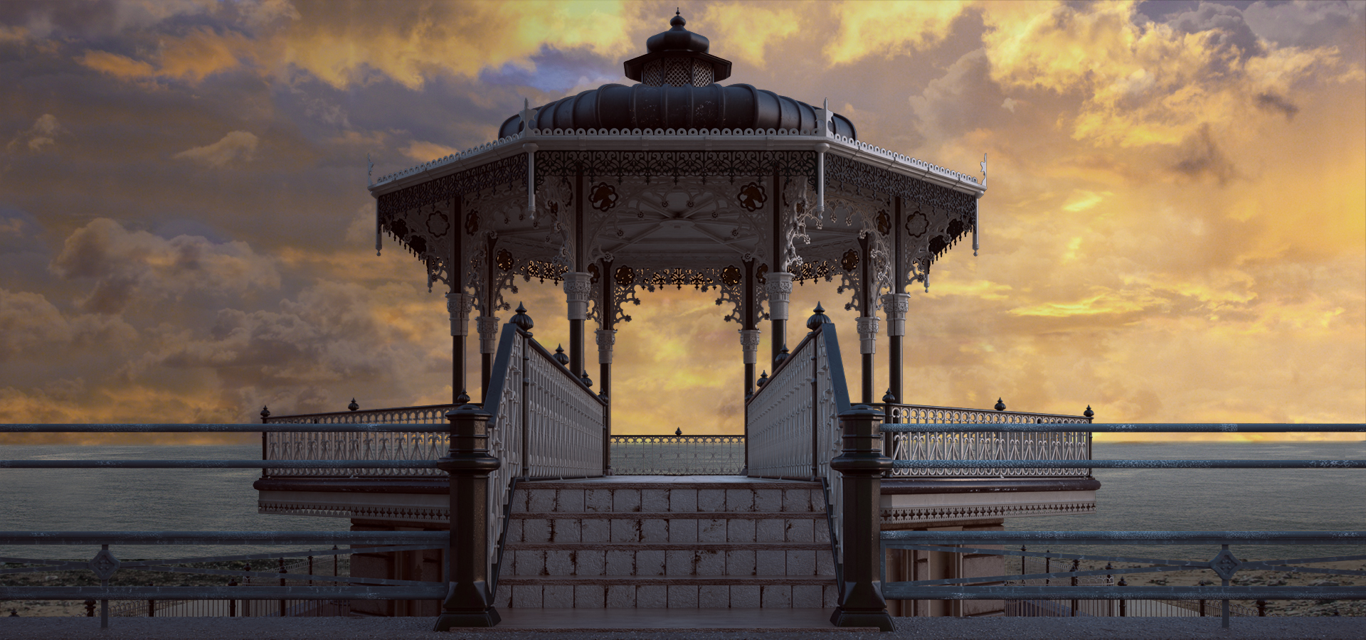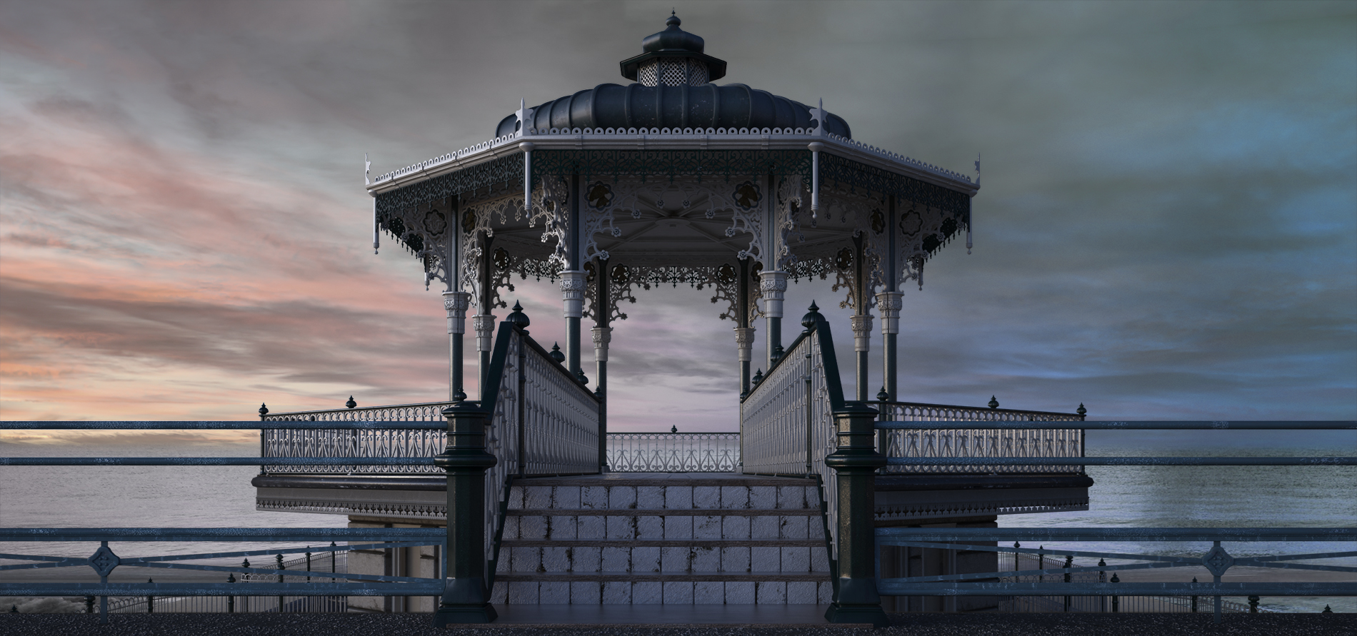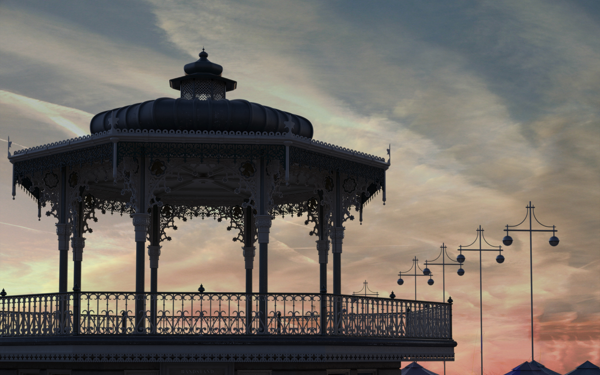 Gazebo en costa (distintas horas del día).