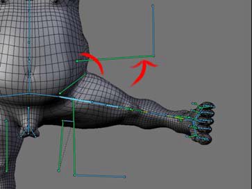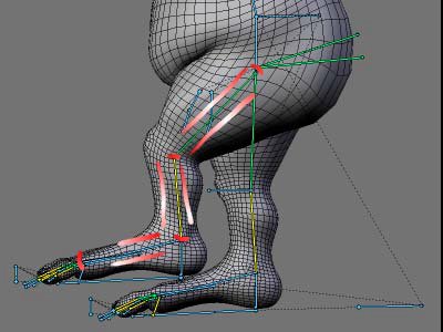 La rodilla tiene un solucionador IK (IK solver) emparentado con el hueso del talón. Gracias a este solucionador IK, la pierna puede ser levantad moviendo el hueso del talon. No hay nada extraño acerca de éste.