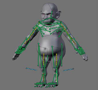 Estos dos tipos de huesos no están para ser manipulados cuando se anima, ya que son automáticamente movidos por el controlador principal de los huesos gracias a todos los mecanismos de restricción asignados al esqueleto (rig).