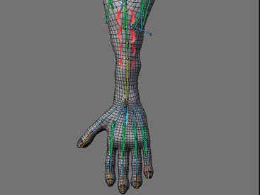 La mejor y más intuitiva manera qué encontré para hacerlo es mediante la creación de algunos huesos elasticos y colocarlos sobre la superficie de la malla. Repito, por encima de la superficie de la malla.