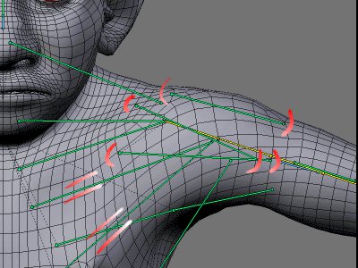 Como he dicho anteriormente en el artículo, lo bueno de tener el hueso elastico es copiar la ubicación de un hueso ayudante que es el hueso que puede mover en el espacio que se extiende. Este mecanismo se utiliza en los huesos del pecho y la espalda, con el fin de simular algún tipo de abultamiento del músculo y el deslizamiento de la piel.