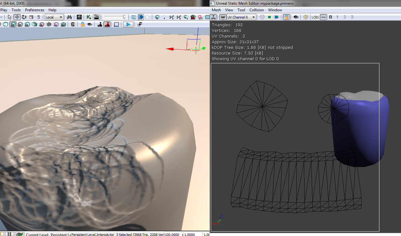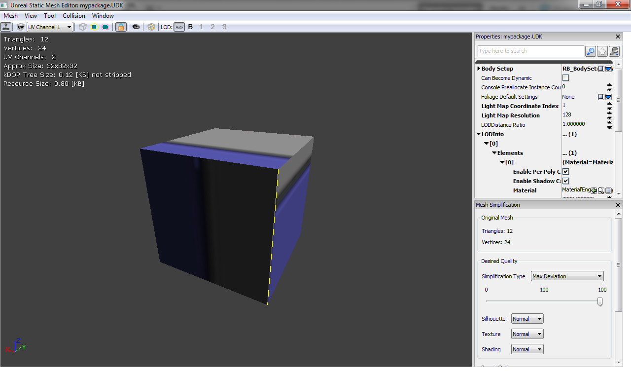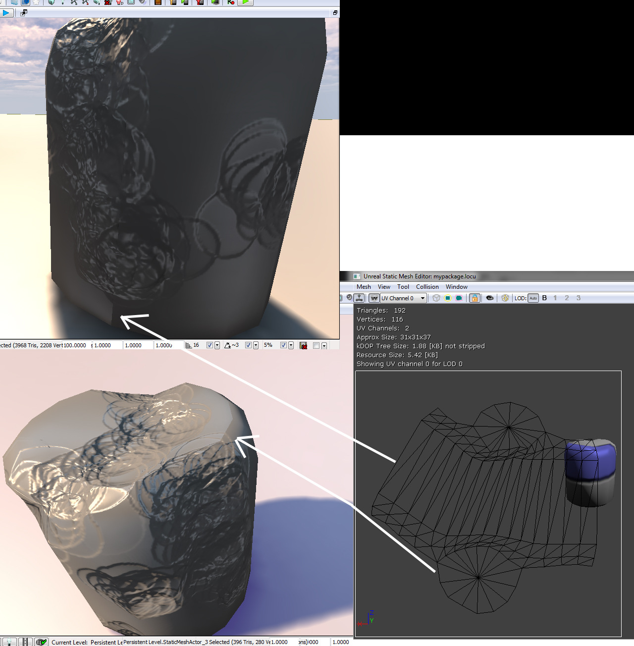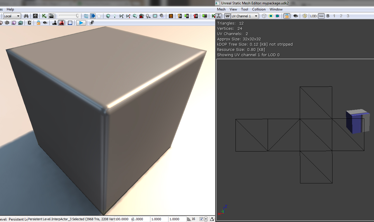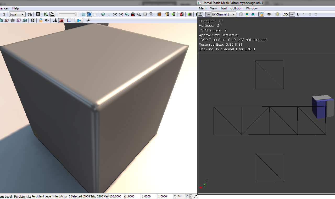 Mi pregunta es: ¿es posible evitar esto y que se sombre bien? Hice una prueba en 3DMax, bakeando un lightmap allí, y pude ver que cuando se usan resoluciones muy pequeñas ocurre lo mismo, sin embargo, con resoluciones más altas no ocurre. En UDK en cambio si me ocurre con resoluciones altas también. Como mejor he podido comprobar que se muestra es cuando cálculo la iluminación sobre los vertex.