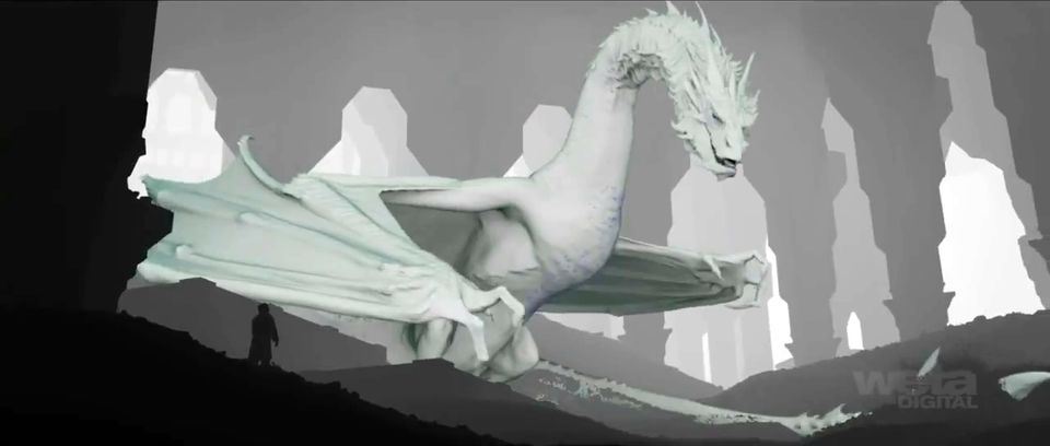 Para Smaug, Jackson sabía qué tenía qué entregar algo alucinante, pero no estaba seguro por dónde empezar: Yo no tenía una visión particular de Smaug, dice Jackson. Él es un dragón y tiene que el típico y clásico dragón. Yo tenía en mí cabeza crear una criatura infernal, mucho más grande de lo que la gente se imagina, pensé. Lo único que me sorprendería es su tamaño, la cabeza es del tamaño de un autobús y su cuerpo es del tamaño de un 747. Eso daría bastante miedo. Así que pensé, ok, vamos adelante con ese tamaño.