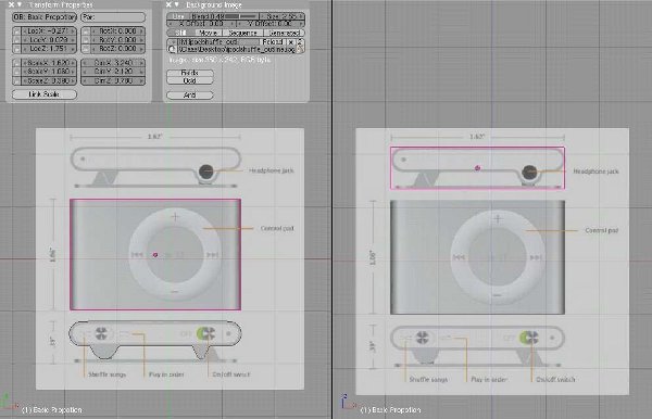 1. Pre-Planificacción: Las mediciones son la gran preocupación en Blender para los nuevos usuarios, y se puede abordar de una forma muy sencilla. A través de la utilización de un dibujo técnico de una iPod los estudiantes eran capaces de trabajar rápidamente en proporciones correctas.